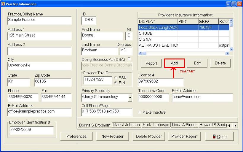 Step3: Click on "Add" for Provider's Insurance Information